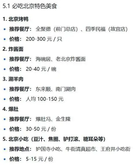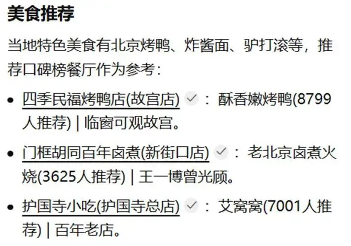 餐飲方面,攜程AI推薦了三家北京特色美食: