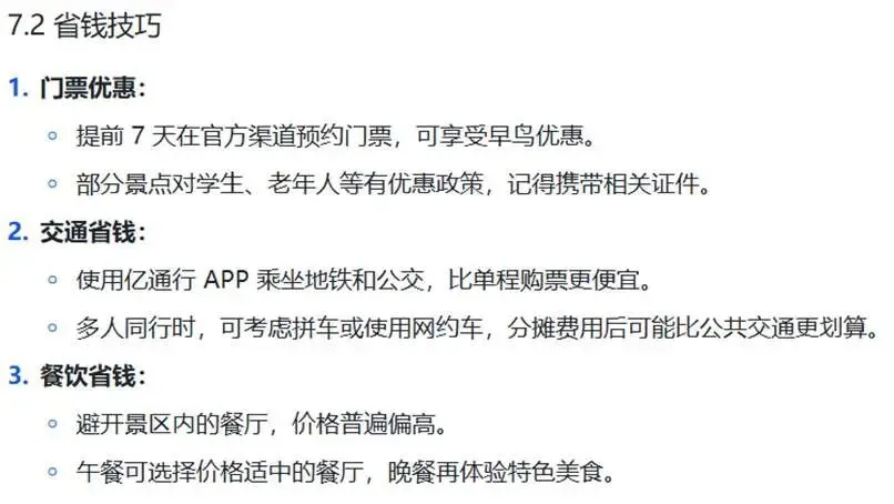 最后,規(guī)劃的結(jié)尾還給出了一些技巧和建議,人性化程度直接拉滿,豆包的用戶體驗(yàn)確實(shí)值得信賴。