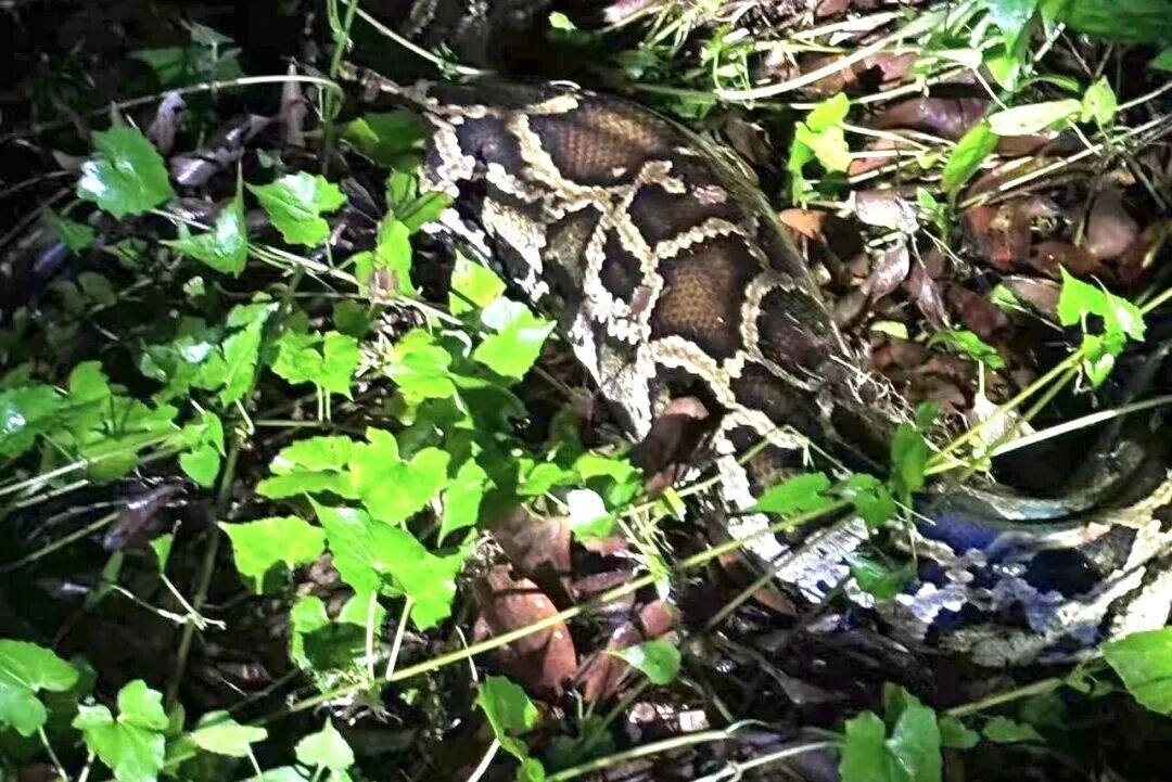 驚險(xiǎn)!東莞一林場(chǎng)56斤大蟒蛇,夜闖工棚偷吃雞鴨,多方合力成功 “拿下”